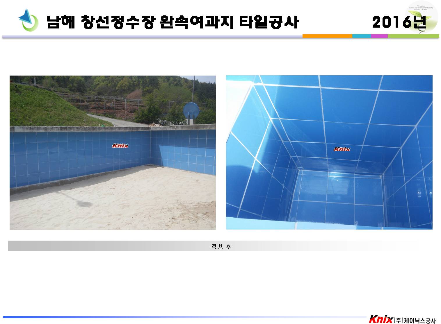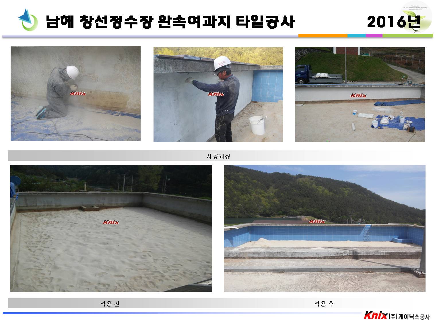 남해 창선정수장 완속여과지 타일공사
